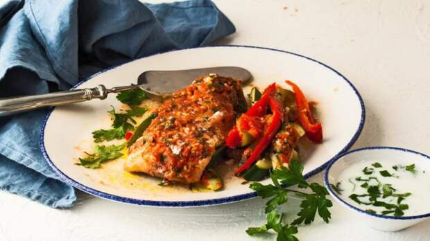 О пользе рыбы известно многое, это и полезные белок, и фосфор, и омега-3. Но все равно многие не спешат использовать этот полезнейших ингредиент на своей кухне. Этот рецепт вкуснейшего блюда – подходящий случай, чтобы пополнить запасы полезных веществ. Ингредиенты Филе трески одним куском – 500 г; небольшие цукини – 2 штуки: сладкие разноцветные перцы – 3 штуки; средние помидоры – 2 штуки; кинза и петрушка – по 3 веточки; чеснок – 2 зубчика; острый красный перец чили – 1 штука; соль. Как приготовить рыбу с овощами в конверте Для начала нужно приготовить маринад. Мелко нарежьте петрушку и кинзу. Очистите и измельчите чеснок. У перца чили удалите семена, очень мелко нарежьте. Помидоры натрите на терке. Смешайте помидорное пюре, чеснок, зелень и чили, добавьте столь и черный перец, влейте 2 столовых ложки оливкового масла и тщательно перемешайте. Положите филе трески на большую тарелке, пишет портал «Гастрономъ». Полейте половиной маринада и оставьте на полчаса. Подготовьте овощи. Удалите семена и перегородки у перца, нарежьте перец вдоль и на полоски шириной 1-1,5 см. Цукини разрежьте вдоль на дольки шириной 1,5 см. Духовку разогрейте до 200 градусов. Выложите на противень двойной лист пергамента длиной 70 см.